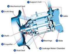 Ứng dụng: Khuấy trộn với hiệu suất cao nhưng không cung cấp Oxy dùng trong bể điều hòa, bể kỵ khí, bể sinh học thiếu khí, tạo sự khuấy trộn ở các góc chết trong bể sinh học. Đặc biệt là quá trình khử Nito (Denitrification, Anoxic)